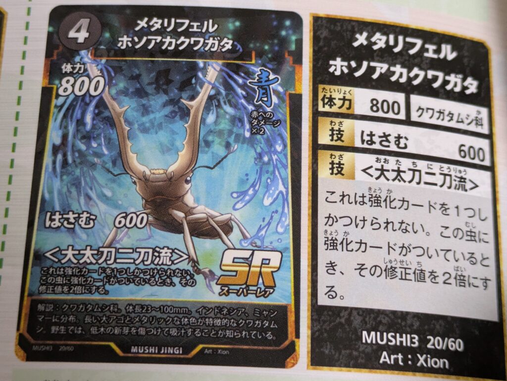 交換枠の候補としては以下のパワータイプの虫たちだが、どちらも1枚も入れない結果となった。