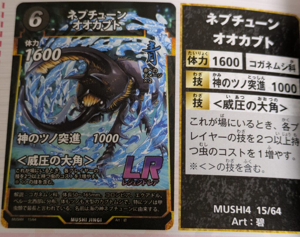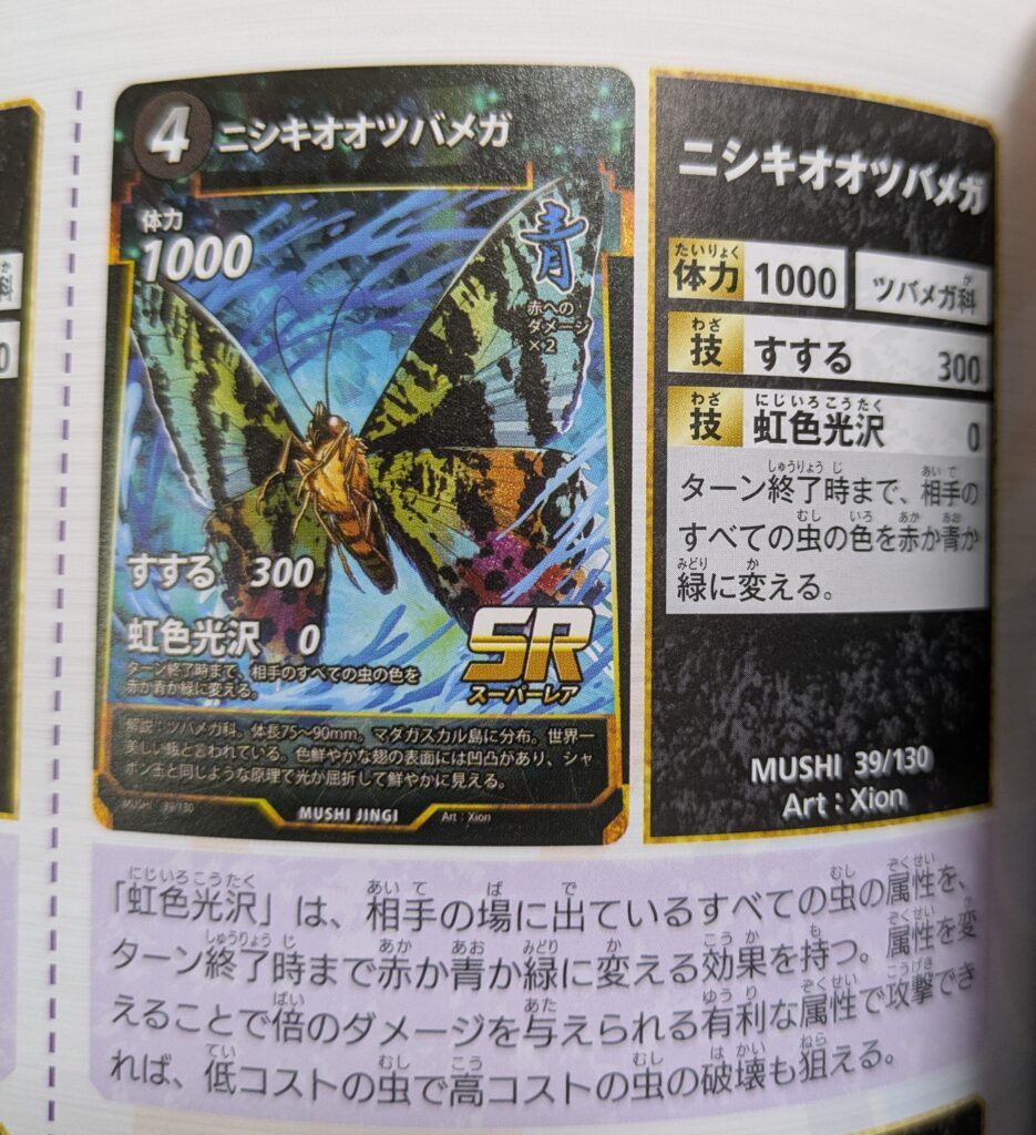 しかし、ウスバカミキリを主軸にした現在のデッキを調整する中で、今回はあえて第4弾のカードを新規採用しないという結論に至った。本記事では、その理由と、唯一議論の対象となったニシキオオツバメガ、そして強化カード枚数の最終判断についてまとめていく。